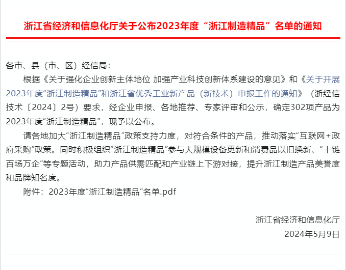 “浙江制造精品”以提升浙江制造產(chǎn)品市場知名度、競爭力、附加值為主要目的,旨在重點選擇一批具有自主知識產(chǎn)權(quán)、技